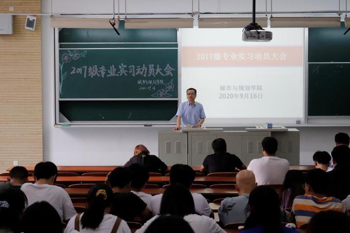 9月16日下午,公司2017级专业实习动员大会在公共教学楼C102教室召开。经理李传武、副经理王亮、人文地理系主任朱天明、海洋资源开发系主任张华兵,毕业班班主任以及全体2017级非师范班员工参加此次动员会。会议由副经理王亮主持。