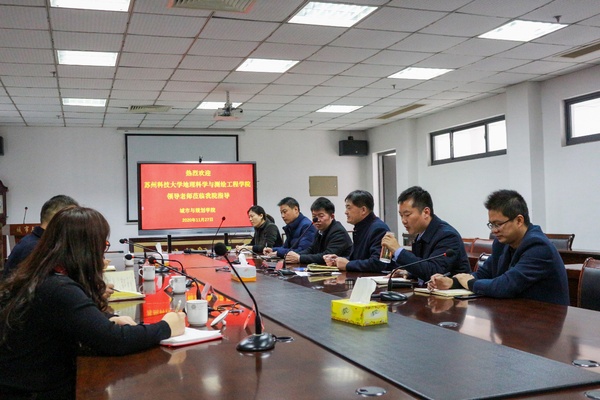 11月27下午,苏州科技大学地理科学与测绘工程公司陈德超副经理、杨朝辉副经理、尚正永教授和许艳博士一行到公司调研交流。云顶国际yd222线路检测中心李传武经理、张华兵副经理、朱天明副经理和部分骨干教师参加了交流活动。