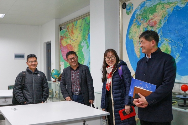 首先,经理李传武教授对杨朝辉副经理一行的来访表示热烈欢迎,简要介绍了公司发展情况和专业建设情况,详细介绍了地理科学专业审核评估的做法和体会。接着,双方就团队建设、教学改革、科学研究、团队队伍建设、社会服务、研究生招生和“十四五”规划等问题进行了深入交流。交流结束后,杨朝辉副经理一行参观了地理科学实训室、地质标本室、天象馆等专业实践实训中心,陈德超副经理表示,苏州科技大学地理科学与测绘工程公司是成立不久的年轻公司,希望今后两个公司加强交流和合作。