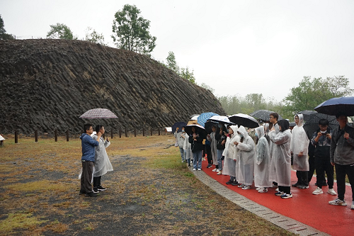 本次野外实习涵盖人工水库、火山地质、植被土壤、喀斯特地貌、区域文化地理、古街等多项专业内容。同学们通过聆听老师讲解、实地参观考察、亲手实践体验,实现了专业理论知识与实践的有机结合,提高了专业认识和实践技能。在南京金牛湖景区,刘玉卿老师详细介绍了金牛湖景区的发展历程和金牛湖的区域优势,布置了实习要点与实习路线,同学们按规定实习路线进行了实地考查。在南京六合国家地质公园,同学们参观了地质博物馆,了解火山、石柱林的科学知识,现场见证了石柱林的磅礴气势。蔡顺老师详细介绍了六合地区整体的地质地貌、气候、水文等自然地理环境特征,实地剖析了六合火山群的地质历史、喷发特征、火山构造等。在南京博物院,同学们参观了博物院,深刻了解到古城南京深厚的文化底蕴。在善卷洞景区,同学们实地考察了苏南地区典型的喀斯特地貌,体验了陶瓷的制作工艺。在宜兴竹海,实习团队感受了苏南地区广阔的竹林,并攀登了苏南第一峰——玉女峰。在镇江金山寺、西津渡,同学们感受了自然与人文的有机统一。