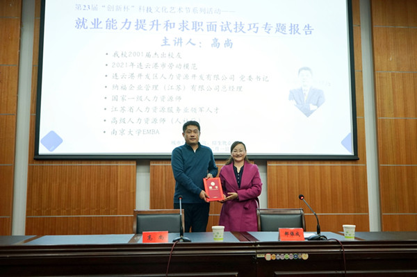 12月1日下午,在公司第23届“创新杯”科技文化艺术节期间,校人才招聘处、云顶国际yd222线路检测中心邀请2001届杰出员工,连云港市劳动模范,连云港开发区人力资源开发有限公司党委书记,纳福企业管理(江苏)有限公司总经理,国家一级人力资源师高尚在新长校区图书馆报告厅作《就业能力提升和面试技巧》专题报告,人才招聘处处长刘海燕为高尚颁发了老员工生涯发展导师聘书,我公司党委书记郝保成主持活动。公司党委副书记吴恒仲、校人才招聘处创业指导服务中心主任桑艳、公司分团委书记杨珊珊、学工办副主任孙树叶和在校毕业生代表现场聆听了报告。公司千余师生线上收看了报告直播。