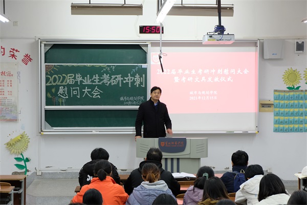 会上,郝保成充分肯定了考研学子备考的辛勤付出,表达了殷切的期望和美好的祝福,鼓励同学们既要志存高远,又要脚踏实地;既要积极备考,又要放平心态,珍惜、享受奋斗的过程。与会师生一起观看了毕业班班主任、已考取研究生的学长学姐、低年级学弟学妹们精心准备的加油祝福视频。