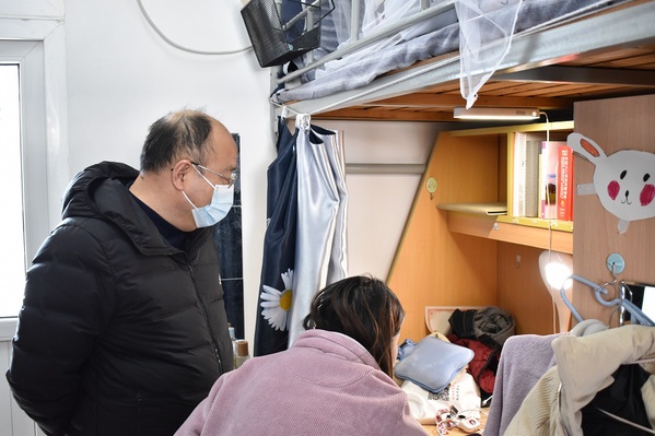 开学伊始,因疫情形势严峻,按照防控管理要求,自2月21日起,公司全面开启线上教学模式。为加强了解同学们线上学习情况,提高同学们线上学习热情,2月24日,公司党委书记郝保成带领辅导员深入员工宿舍对员工线上上课情况进行检查。