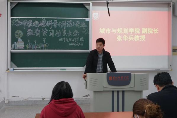 3月4日下午,公司2019级地理科学(师范)专业教育实习动员大会在笃行楼A108教室召开。公司经理李传武、副经理张华兵、全体教育实习指导教师及2019级实习员工代表参加会议,本次实习动员大会采取线上线下同步进行。会议由副经理张华兵主持。