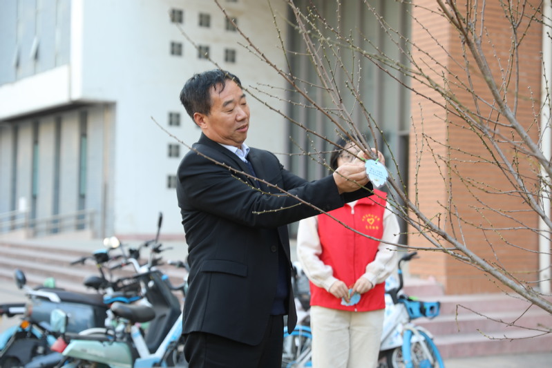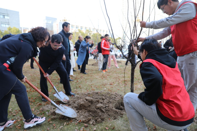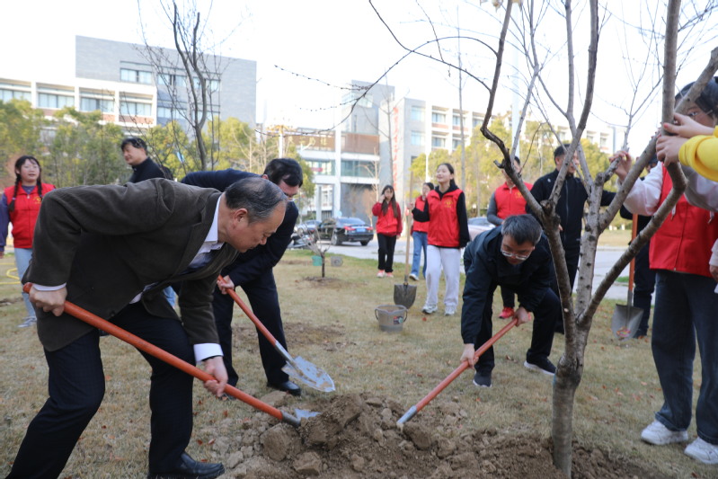 在植树过程中,戴斌荣、方忠等校领导与师生亲切交谈,当了解到参加植树活动的都是公司“王强班”创建班级的大一新生时,校领导鼓励同学们用自己的辛勤劳动践行“两山”理论,与自己亲手栽下的树苗共同成长,共同进步,成长为对国家、对社会有用的栋梁之才。师生还一起给刚种下的小树挂上祝福卡片,共同寄托师生“播种绿色,桃李芬芳”的美好愿望。