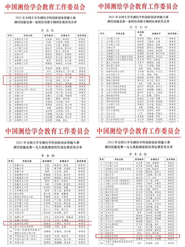 测绘技能竞赛专业组团体 | 朱亚云、田文静、石鹏羽、朱思宇、陈欢、蔡马美惠 | 杨元元、姚艳丽 | 一等奖 |