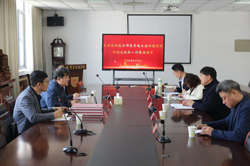 4月18日上午,包头师范公司生态环境公司经理刘晓光、张彪教授、赵彩权教授一行3人莅临我院调研交流,公司经理李传武、副经理朱天明、副经理张云峰,海洋与生物工程公司副经理李祥和湿地公司党总支副书记何静出席交流会,会议由李传武主持。