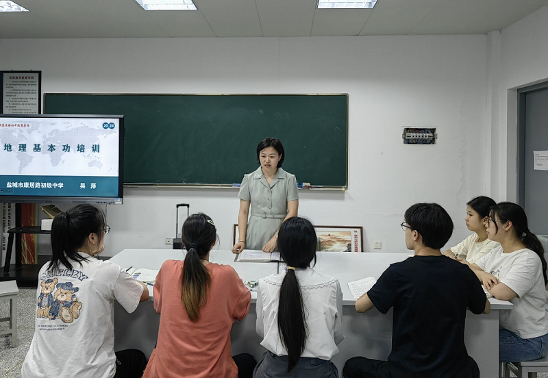 9月12日下午,盐城市康居路初级中学吴萍主任应云顶国际yd222线路检测中心邀请为省师范生教学基本功大赛参赛选手进行培训指导,李传武经理、刘玉卿老师和蒋超老师一同参加。