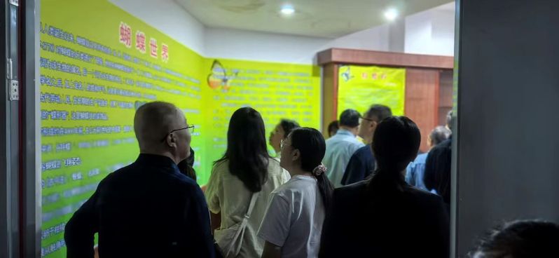 在会议交流环节,江苏省教科院副经理曹民生、教研员于蓉和全国省级地理教研员参观了我院的地质标本室、师范生实训室和湿地公司的蝴蝶馆、植物标本馆。参观过程中,李传武经理、实验室主任王建教授对公司国家一流专业建设、高质量人才培养和实践教学等方面取得的成果进行了详细介绍,专家们对此表示充分肯定。湿地公司学工办副主任、团委副书记朱瑶为专家们介绍了蝴蝶馆和植物标本馆。