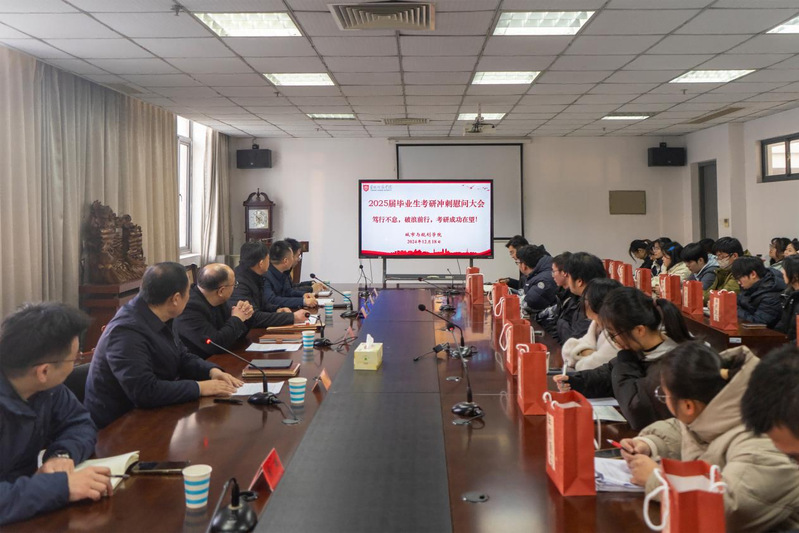 在2025年考研即将到来之际,为鼓舞考研学子士气。12月18日下午,公司在笃行楼A410举办2025届考研冲刺慰问活动。公司领导郝保成、李传武、吴恒仲、朱天明,毕业班辅导员班主任老师,2025届考研员工代表参加活动。党委副书记吴恒仲主持慰问活动。